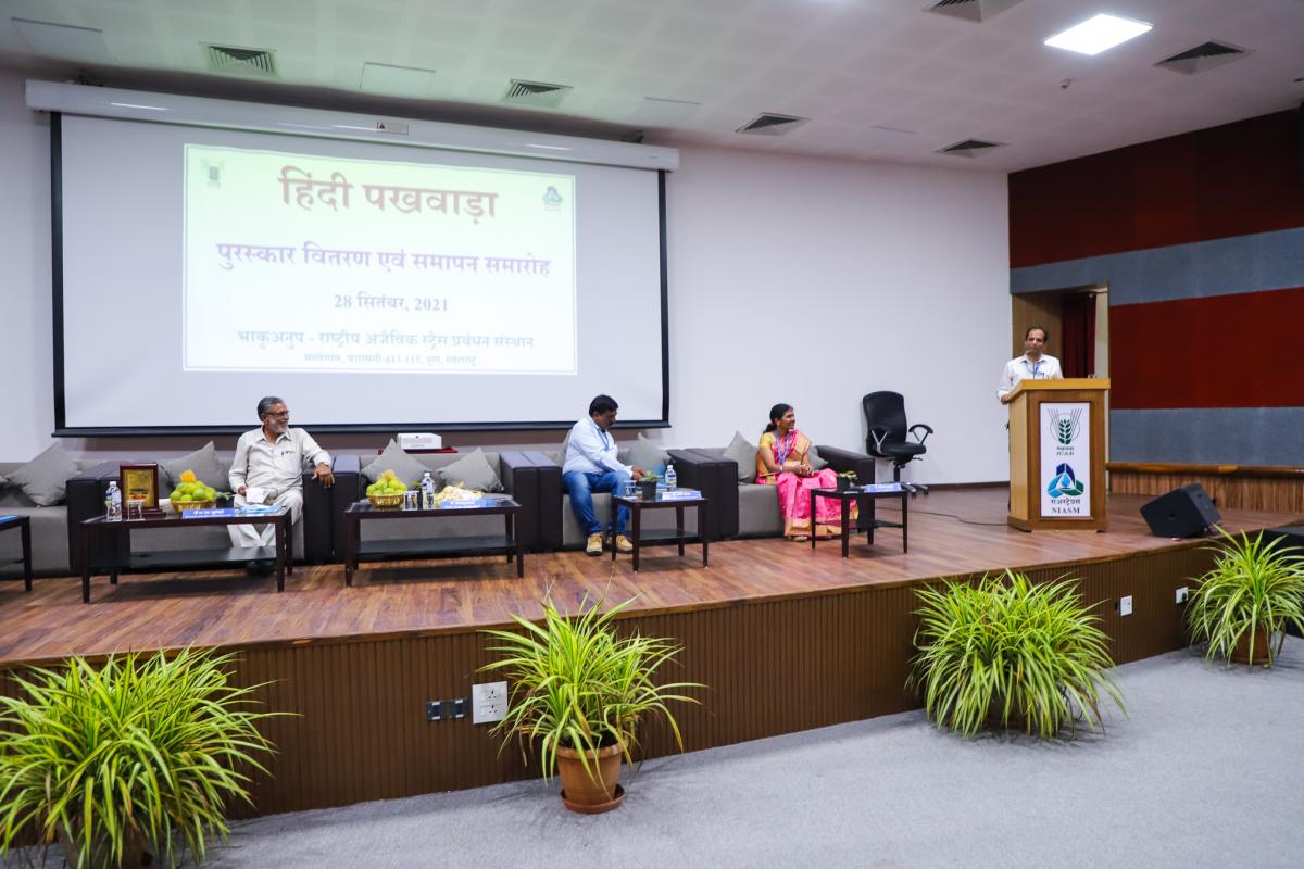 राजभाषा हिंदी के प्रगामी प्रयोग को बढ़ावा देने हेतु भाकृअनुप-राष्ट्रीय अजैविक स्ट्रैस प्रबंधन संस्थान, बारामती द्वारा १४ सितम्बर से २८ सितम्बर के दौरान “हिंदी पखवाड़ा” का आयोजन किया गया। हिन्दी दिवस तथा हिन्दी पखवाड़ा का उद्घाटन संस्थान के निदेशक डॉ हिमांशु पाठक के मार्गदर्शन में १४ सितम्बर को किया गया। उद्घाटन समारंभ में मुख्य अतिथि के रूप में डॉ सविता नाईक-निंबालकर (सहयोगी प्राध्यापक, मुधोजी महाविद्यालय, फलटण जिला सातारा) मौजूद रहे। उन्होने हिन्दी साहित्य का उदय एवं विकास के बारे में सभी को अवगत किया। हिन्दी पखवाड़ा में लगातार विविध प्रतियोगिताओंका जैसे की, निबंध लेखन (हिन्दी भाषियोंके लिए/अहिन्दी भाषियोंके लिए), टिप्पण लेखन, टंकलेखन, काव्यवाचन, हिन्दी अनुवाद, तत्काल भाषण, प्रश्नोत्तरी आदि प्रतियोगिता आयोजित की गयी। जिसमे संस्थान के सभी सदस्यों ने बढ़-चढ़कर हिस्सा लिया और प्रतियोगिताए सफल बनाई। हिन्दी पखवाड़ा समारोप एवं पुरस्कार वितरण समारंभ का आयोजन २८ सितम्बर को संस्थान के सरदार पटेल सभागार में किया गया।
