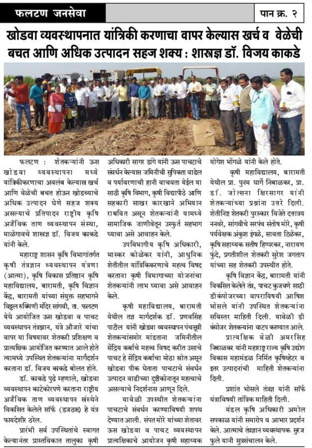 One day farmers training on multifunctional ratoon drill (MRD) machine for ratoon sugarcane management at Sangavi village, Phaltan, Satara
