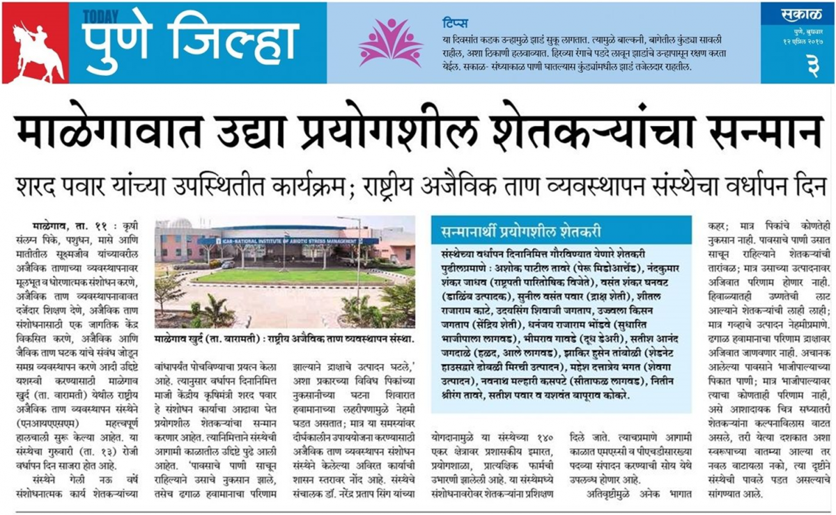 Sakal Today (Pune Dist.) Thursday, 12 April, 2017