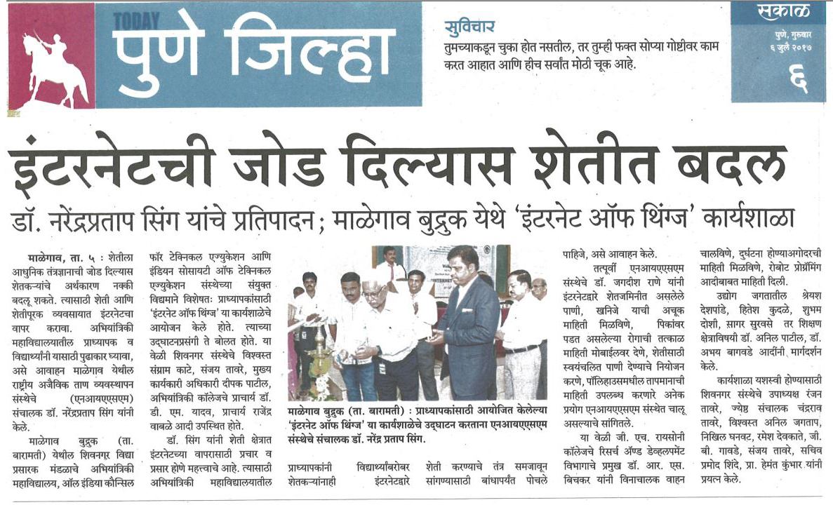 Sakal Today (Pune Dist.) Thursday, 06 July, 2017