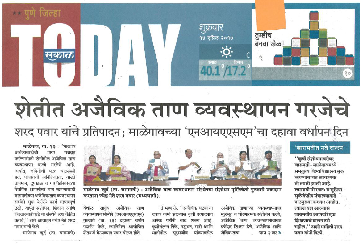 Sakal Today (Pune Dist.) Friday, 14 April, 2017