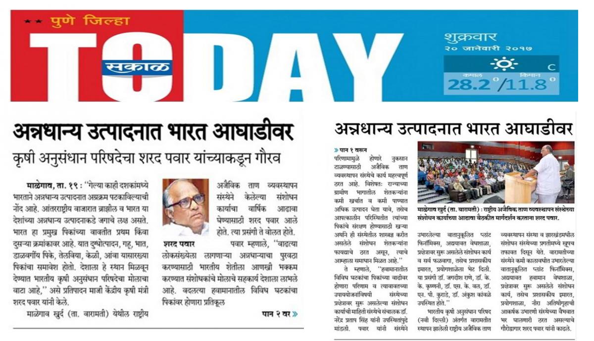 Sakal Today (Pune Dist.) Friday, 20 January, 2017
