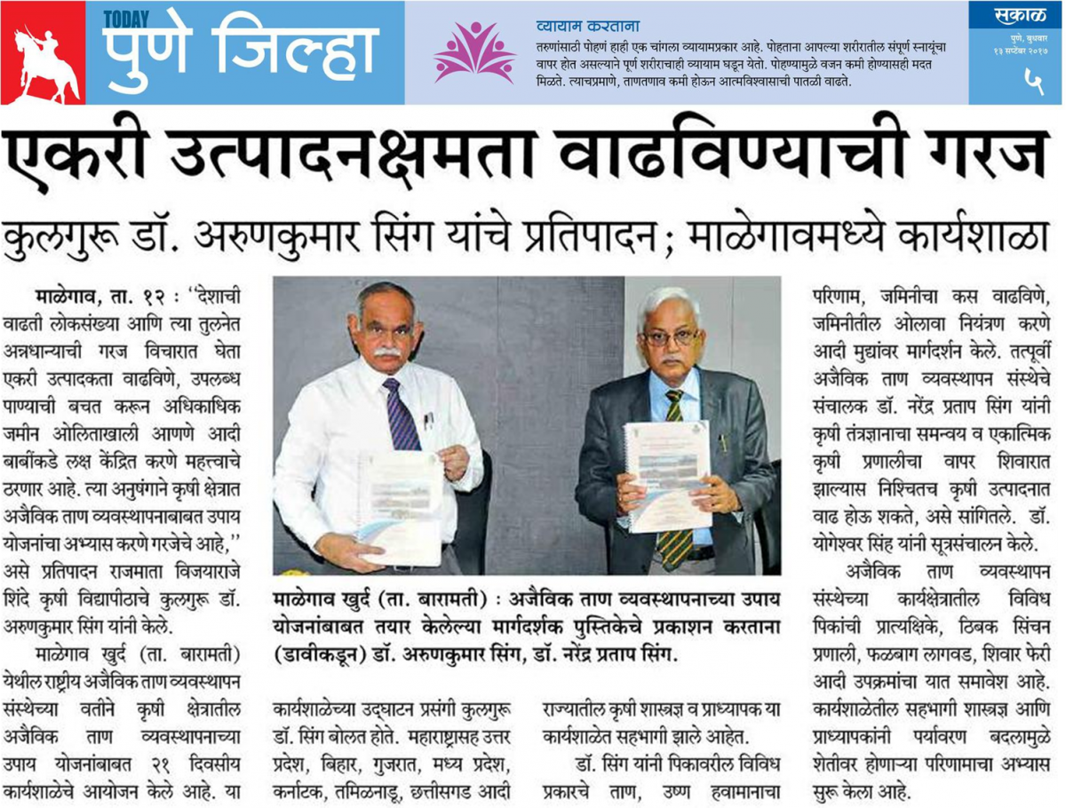 Sakal Today (Pune Dist.) Wednesday, 13 September, 2017