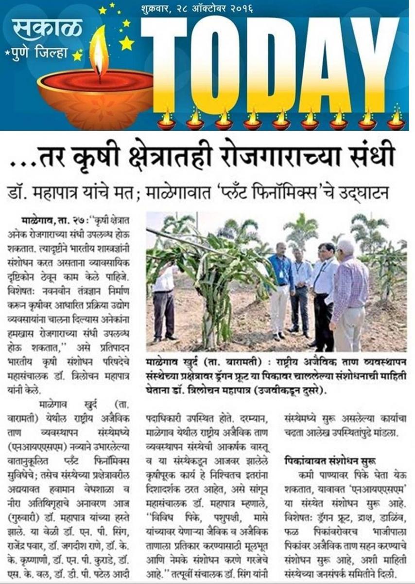Sakal Today (Pune Dist.) Friday, 28 October, 2016