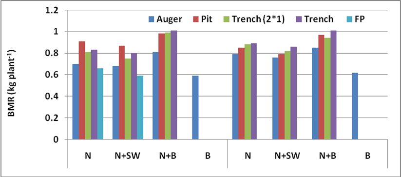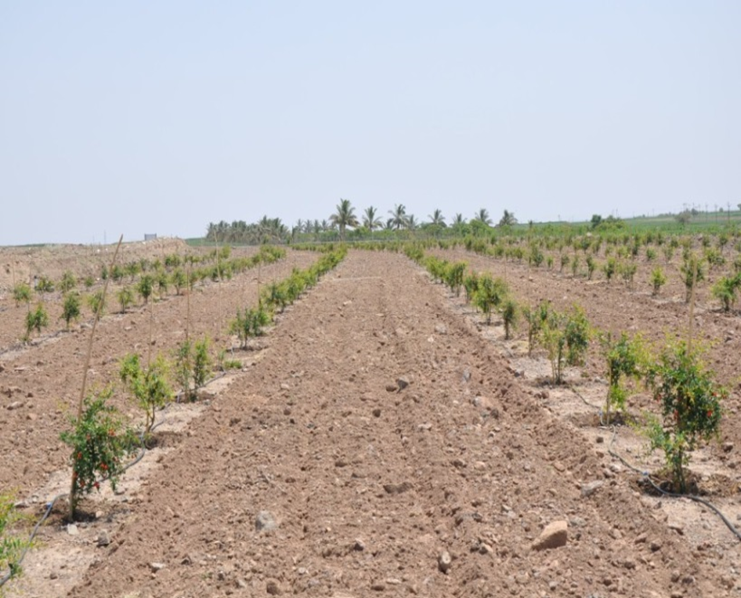 Shallow basaltic soils exist on large scale in Maharashtra and the growth of orchards is largely hampered by hard murrum. Studied the effect of various planting methods and soil mixtures on performance of fruit plants viz., sapota, pomegranate and guava under these conditions. The tallest plant height was recorded in case of pit and trench planting filled up with mixture of native murrum and black soil. Overall, the mixtures of soil with micro-blasting and planted either in trench or pit performed better than all other treatments.